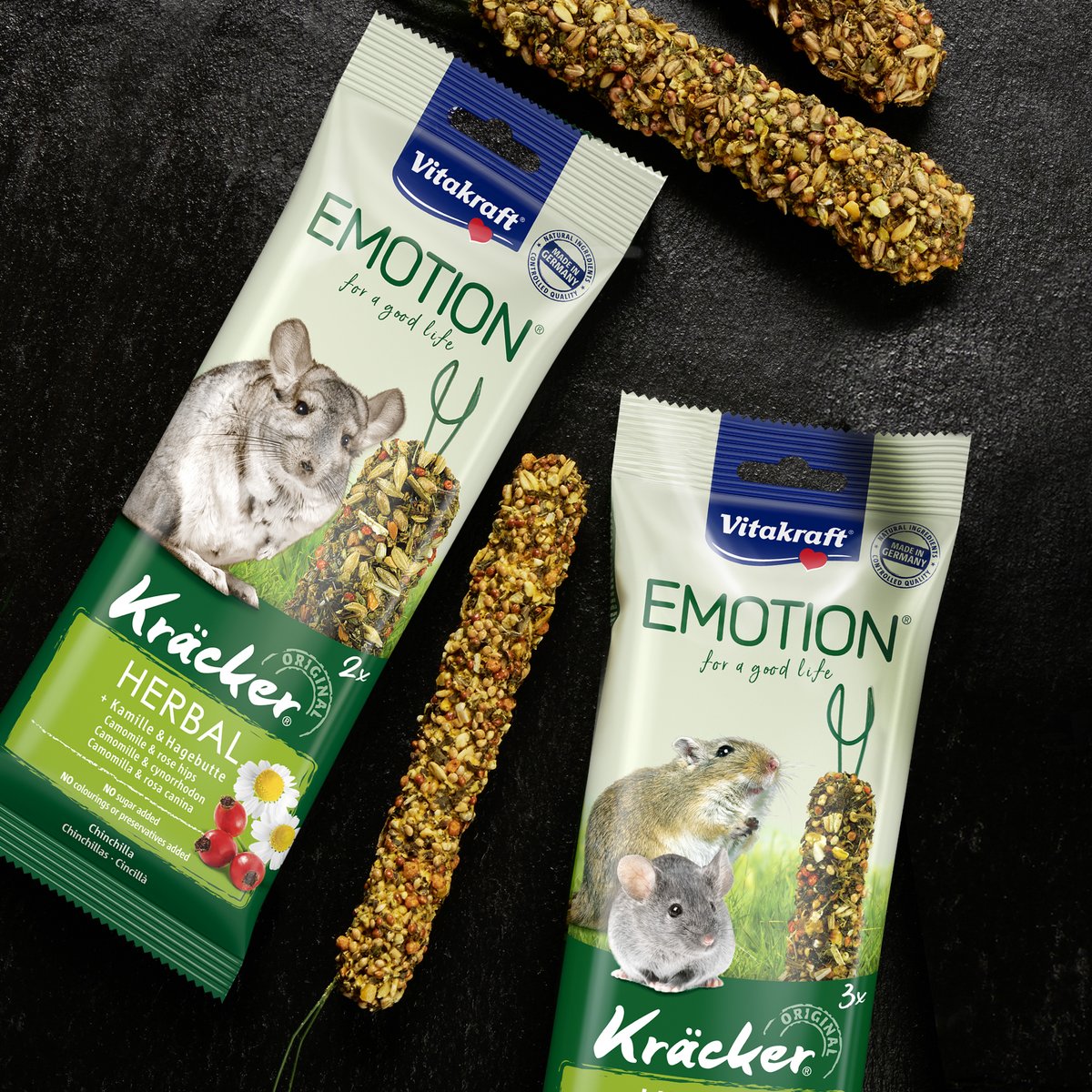 Vitakraft® EMOTION® Kräcker® in delicious flavors are optimally adapted to the respective rodent species.