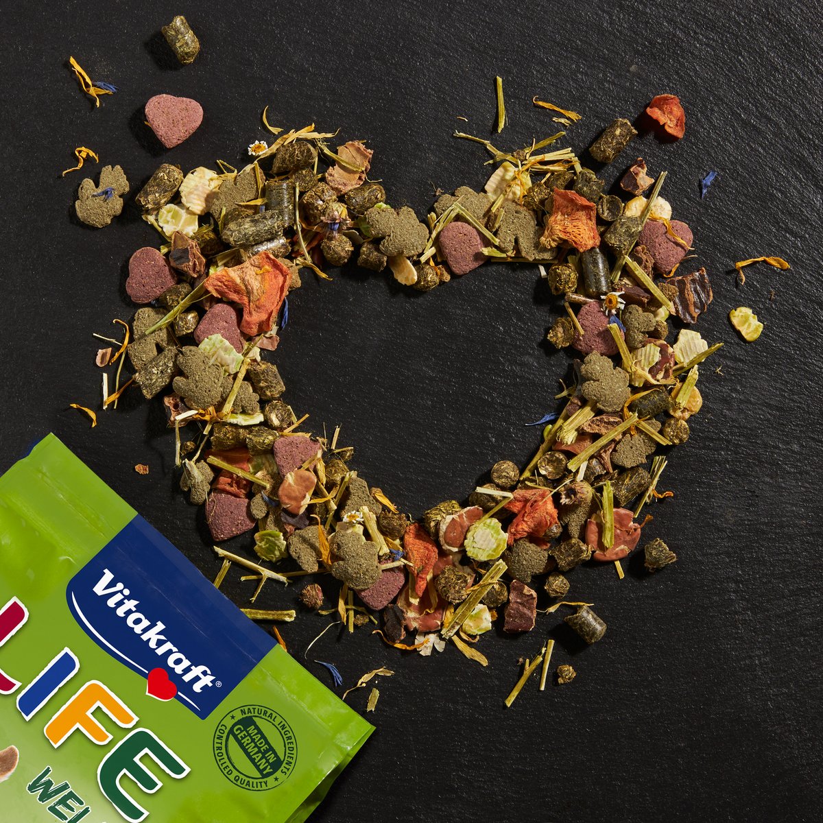 Depending on the variety, Vitakraft® LIFE foods contain beta-glucans, high-quality omega fatty acids or a healthy proportion of crude fiber.
