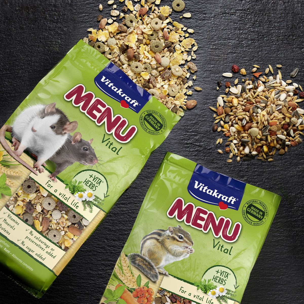 Our Vitakraft® MENU Vital mixes contain delicious vegetables and fruity fruit.