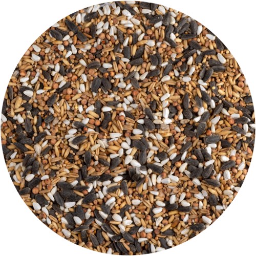 céréales (avoine 32,0%), graines (graines de tournesol 10,0%, graines d'églantier 1,0%), substances minérales, huiles et graisses