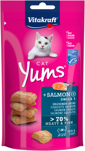 Le saumon de Cat Yums est non seulement irrésistiblement délicieux, mais aussi fonctionnel. Le délicieux saumon contient des acides gras oméga 3 qui favorisent la peau et le pelage de votre chat. Ce goûter pour chats est préparé avec amour et cuit délicatement au four. Les Cat Yums ne contiennent ni sucres ajoutés ni céréales.