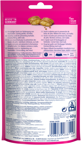 Ces irrésistibles coussins croustillants avec leur coeur crémeux au malt vont devenir, bouchée après bouchée, un snack incontournable pour votre chat. Le malt aide à prévenir la formaltion des boules de poils. Friandise idéale comme récompense ou comme petit encas.