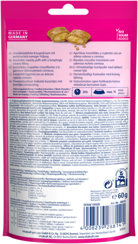 Ces irrésistibles coussins croustillants avec leur coeur crémeux à la volaille vont devenir, bouchée après bouchée, un snack incontournable pour votre chat. Friandise idéale comme récompense ou comme petit encas.