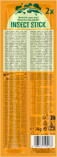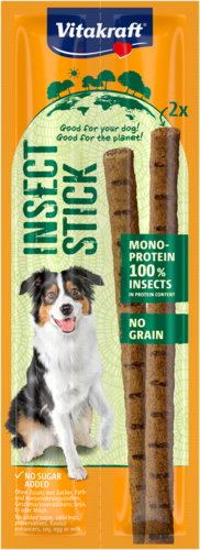 <p class="p2">Vous estimez qu'il est important de gâter votre chien de manière responsable et d'aider l'environnement ? Surprenez votre chien avec l'Insect Stick de Vitakraft ! Un snack naturel pour chiens <b>rempli de protéines.</b> Ce snack responsable est fabriqué à partir d'<b> insectes</b>, ce qui signifie que ce snack ne contient qu'une seule source de protéines. Cette friandise convient donc aux chiens hypersensibles à la nourriture. De plus, l'Insect Stick ne contient pas de sucres ajoutés, de colorants ou de conservateurs, ni de soja, d'œufs, de lait ou de céréales. La nature pure à chaque bouchée !</p>