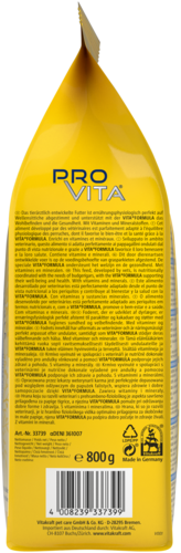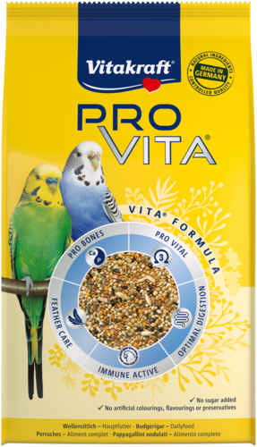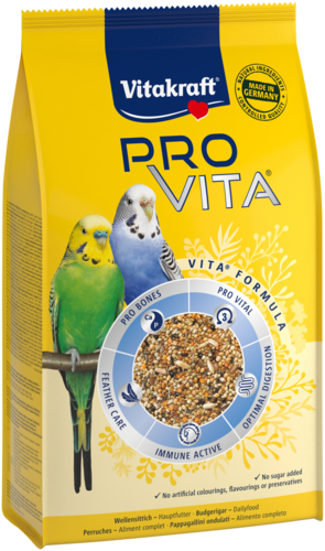 Le Pro Vita® perruche est une alimentation principale équilibrée, développée par des vétérinaires. Cette nourriture contient de nombreuses savoureuses céréales et graines différentes ainsi que des oligoéléments, des vitamines et des substances minérales essentielles. Avec formule unique VITA FORMULA qui combine de précieux acides gras oméga-3 à l'équilibre optimal en acides aminés essentiels - idéal pour protéger le coeur de l'oiseau en le rendant plus actif et en couvrant tous ses besoins pour améliorer son bien-être. La nourriture Pro Vita® est enrichie en probiotiques et en gastrolithes pour une digestion optimale et une flore intestinale saine, en bêta-glucanes pour un système immunitaire renforcé et en méthionine pour un plumage sain. Son équilibre optimal en calium et en phosphore contribue également à entretenir la structure osseuse. Recette sans sucre, sans arômes artificiels ni conservateurs. Emballé dans un emballage fraîcheur refermable.