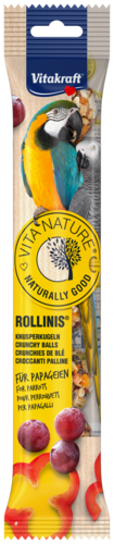 Vous voulez surprendre votre balle de plume avec une friandise ? Puis variez-le avec le Vitakraft Rollinis. Les boules contenant des graines, des fruits et des légumes ne sont pas seulement <strong>incroyablement savoureuses</strong>, elles constituent également <strong>un jouet actif</strong> pour les perroquets. Les Rollinis sont destinés à être posés librement sur le sol. En raison de leur forme ronde, le perroquet doit faire un effort supplémentaire pour les manger. Les Rollinis de Vitakraft sont un en-cas amusant et savoureux, préparé sans colorants artificiels et sans antioxydants. Le snack est emballé par Aroma Fresh, de sorte que les Rollinis restent bien croustillants.