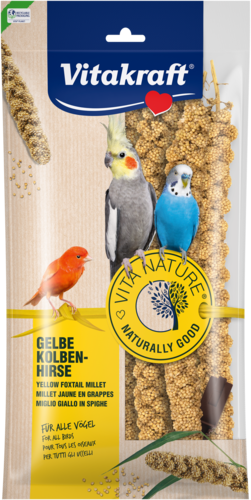 Le millet VITA NATURE Vitakraft est entièrement composé de millet jaune naturel. Le millet est récolté et séché avec soin. Parfait comme friandise saine pour les oiseaux d'ornement. Le millet stimule l'activité naturelle de l'oiseau qui doit picorer les graines de la branche. Facile à digérer, le millet offre un bon apport en vitamine B. Avec attache pratique pour suspendre les branches dans la cage.