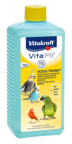 Pour rester en bonne santé, les oiseaux ont besoin d'eau fraîche tous les jours. Le Vita Fit Boisson est une eau pour tous les oiseaux. Elle est enrichie en iode et contient des substances minérales naturelles ainsi que des oligoéléments qui soutiennent le métabolisme des oiseaux. Parfait pour couvrir les besoins quotidiens d'apport en liquide des oiseaux.