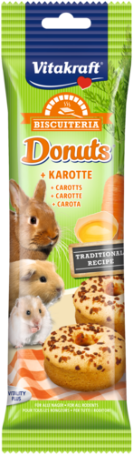 Délicieux biscuit à la carotte préparé dans notre propre boulangerie selon une recette traditionnelle avec des oeufs et de la farine. Parfait pour les petites faims de tous les rongeurs et des lapins nains. Sans colorants, sans arômes artificiels ni conservateurs. Emballé par 4 pc dans un emballage fraîcheur pour que les biscuits restent croustillants.