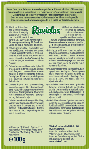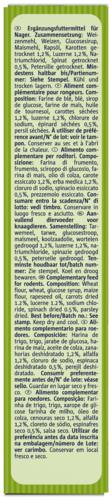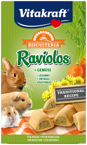 Bouchées croustillantes fourrées aux légumes et fabriquées selon une recette traditionnelle. Friandise naturellement riche en carotène et enrichie en précieuses substances minérales. Parfait pour les petites faims entre les repas de tous les rongeurs et des lapins nains. Sans colorants ni conservateurs.