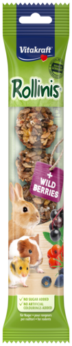 Les Rollinis aux fruits des bois et aux céréales sont non seulement un snack responsable mais aussi un jeu actif pour tous les rongeurs et les lapins nains. Les Rollinis peuvent être placés sur le sol. L'animal doit alors attraper ces petites balles qui roulent pour pouvoir les manger. Délicieuse friandise amusante fabriquée selon une recette sans sucre, sans colorants ni conservateurs. Snack emballé dans un emballage fraîcheur Aroma Fresh pour que les Rollinis restent croustillants.