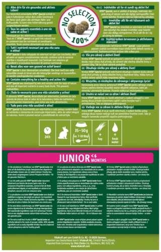 Vitakraft Vita Special junior a <strong>un rapport calcium-phosphore équilibré</strong> pour assurer une croissance optimale à votre nouveau membre de la famille. La taille des croquettes est également bien adaptée au stade de vie de l'animal pour un comportement alimentaire sain.