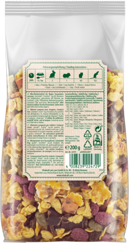 Une combinaison de noix et de fruits ? Cela rendra chaque lapin ou rongeur heureux ! Alors faites-vous plaisir avec le Vita Verde Happy Frutti de Vitakraft. Ce délicieux mélange fruité contient des ingrédients naturels tels que des noisettes, de la papaye et de la banane. Un plaisir de grignotage délicieux aux saveurs de la nature. Un en-cas sain pour varier la nourriture de tous les rongeurs et lapins. Grâce aux ingrédients naturels, vous gâtez également votre proche avec des vitamines et des minéraux naturels. En outre, cette friandise ne contient pas de sucres ajoutés, de colorants artificiels, d'exhausteurs de goût et de conservateurs.