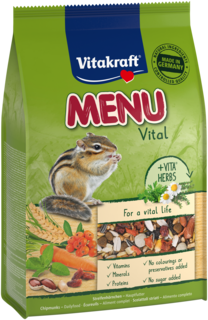 Vitakraft® MENU Vital mixen combineren smakelijke groenten en fruit met VITA® HERBS, zorgvuldig geselecteerde kruiden ter ondersteuning van het welzijn van uw knaagdier. Heerlijk én voedzaam, verpakt in een handig hersluitbaar vershoudzakje.