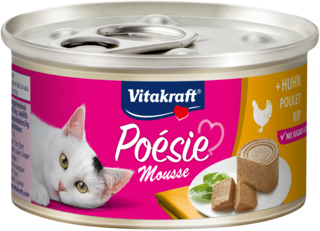 Vitakraft® Poésie® Mousse verwent je kat met een onweerstaanbaar lekkere, zachte smaak die smelt in de mond.
