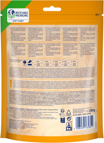 - Zonder toegevoegde suiker, soja, eieren, zuivelproducten en vleesmeel