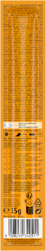 Wil jij je hond verwennen met een heerlijke en gezonde vissnack? De Vitakraft® Fish Stick met zalm is een smaakvolle traktatie met meer dan 75% pure vis, perfect voor honden met een gevoelige maag of voedselovergevoeligheden. De gerookte geur maakt deze snack onweerstaanbaar, terwijl de natuurlijke omega-6-vetzuren bijdragen aan een gezonde huid en glanzende vacht. Dankzij de gesealde afscheurverpakking is deze snack ideaal voor onderweg. Perfect om je hond te belonen, te verwennen of gewoon voor de kleine trek!