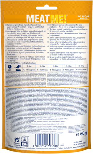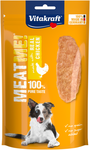 Wil je de band tussen jou en je hond nog sterker maken? Geef je trouwe viervoeter dan de heerlijke Vitakraft® MEAT ME!® kipreepjes. Deze zorgvuldig gedroogde lekkernij is gemaakt van puur vlees en zit boordevol eiwitten, zonder toegevoegde suikers of kunstmatige toevoegingen. Het is de perfecte manier om je hond te verwennen en tegelijkertijd te zorgen voor een smakelijke beloning. Of je nu samen speelt, traint of gewoon een gezellig moment deelt, deze kipreepjes maken de band tussen jullie nog sterker!