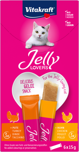 Betrap je jouw kat weer op een stiekeme poging om je lunch te kapen? Dan is het hoog tijd om hem een eigen culinaire traktatie te geven! Met Vitakraft® Jelly Lovers geniet je kat van een sappige gelei-snack die puur genieten is.