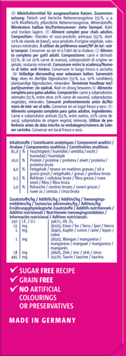En het beste? Deze traktatie is een volledige maaltijd, bereid zonder granen, toegevoegde suikers, conserveringsmiddelen of kunstmatige kleur- en smaakstoffen. Zo geef je je kat elke dag opnieuw een verantwoorde én overheerlijke verwenmoment.