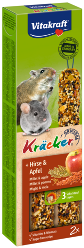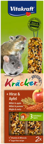 Is jouw knaagdier een echte knabbelkampioen? Dan is de Vitakraft® Kräcker met granen en vruchten dé snack voor hem! Deze krokante lekkernij bevat een heerlijke mix van granen, gierst en appel en is drielaags gebakken op een natuurlijk knabbelhoutje. Dit houdt je knager niet alleen lekker bezig, maar helpt ook bij de natuurlijke slijtage van de tanden. Bovendien is deze verantwoorde snack verrijkt met essentiële vitamines en bereid zonder toegevoegde suikers. Gezond, lekker en boordevol knabbelplezier!