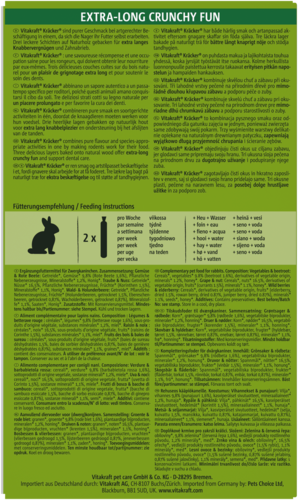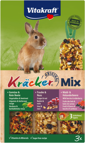 Deze Vitakraft® Kräcker® zijn niet alleen een lekkere traktatie, maar ook een soortspecifieke bezigheid voor je dwergkonijn. Tijdens het knabbelen moet je konijn moeite doen om bij het lekkers te komen, wat zorgt voor een gezonde en actieve afleiding.