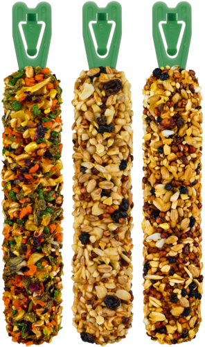 De graanmengsels worden in drie lagen gebakken op natuurlijk hout. Dat zorgt voor extra lang knabbelplezier en helpt, net als in de natuur, bij het afslijten van de tanden. Dankzij het drievoudige bakproces blijven de ingrediënten stevig vastzitten en blijft de smaak optimaal behouden.
