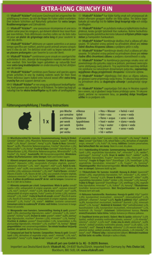 De Vitakraft® Kräcker® Mix is speciaal ontworpen voor hamsters en bevat geen toegevoegde suikers. Verrijkt met essentiële vitamines en waardevolle voedingsstoffen, zoals vitamine C, ondersteunt het de gezondheid en vitaliteit van je hamster. De Kräckers zijn 3-voudig gebakken, zodat de ingrediënten stevig vastzitten.