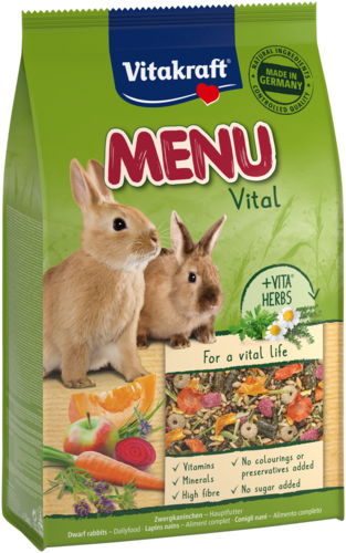 Menu Vital bevat geen toegevoegde suikers, kunstmatige smaakversterkers en conserveringsmiddelen. Alleen het beste voor jouw konijn, zoals de natuur het bedoeld heeft.