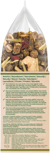 - Tandverzorging: Het hoge gehalte aan ruwe vezels bevordert langdurig kauwen en ondersteunt zo de tandslijtage
