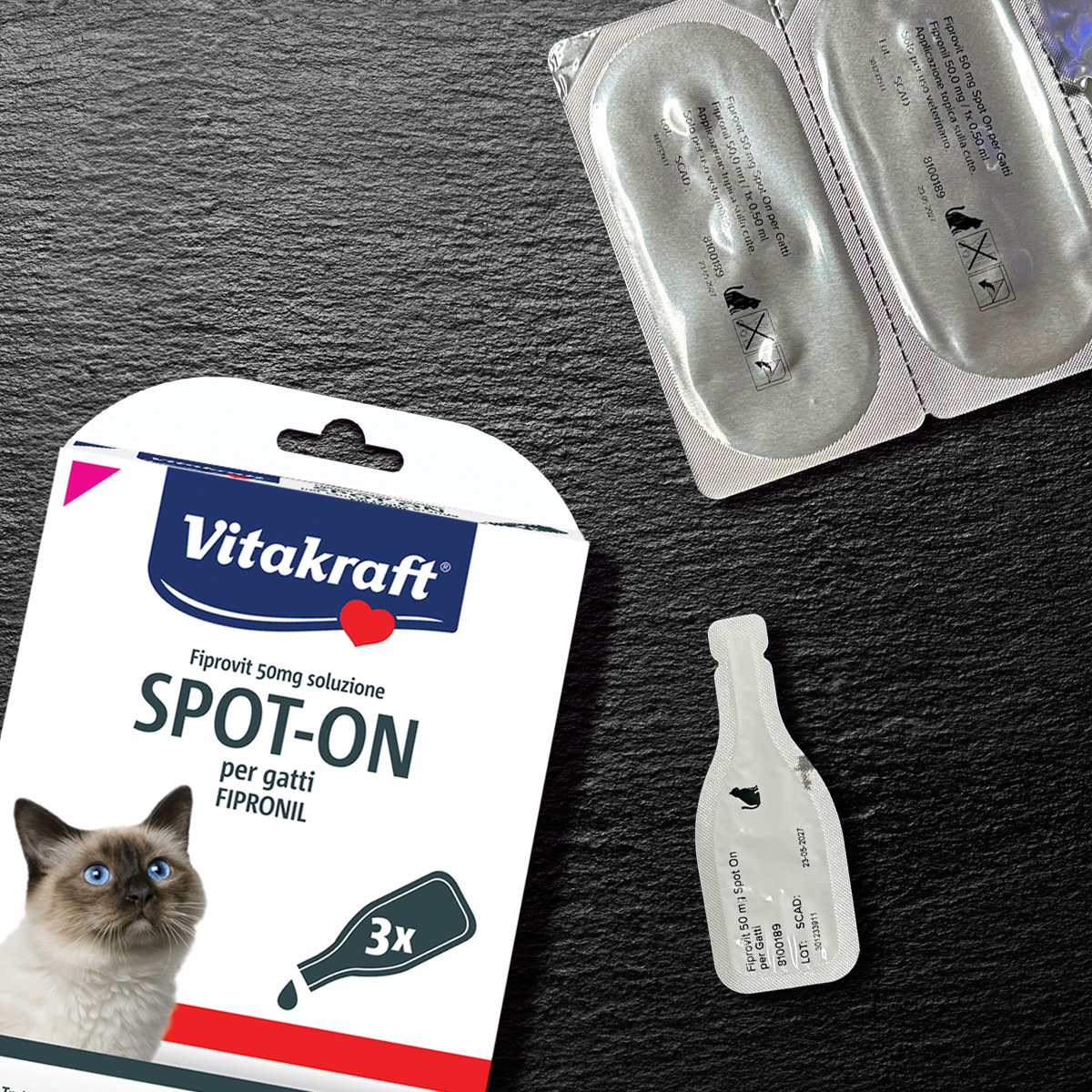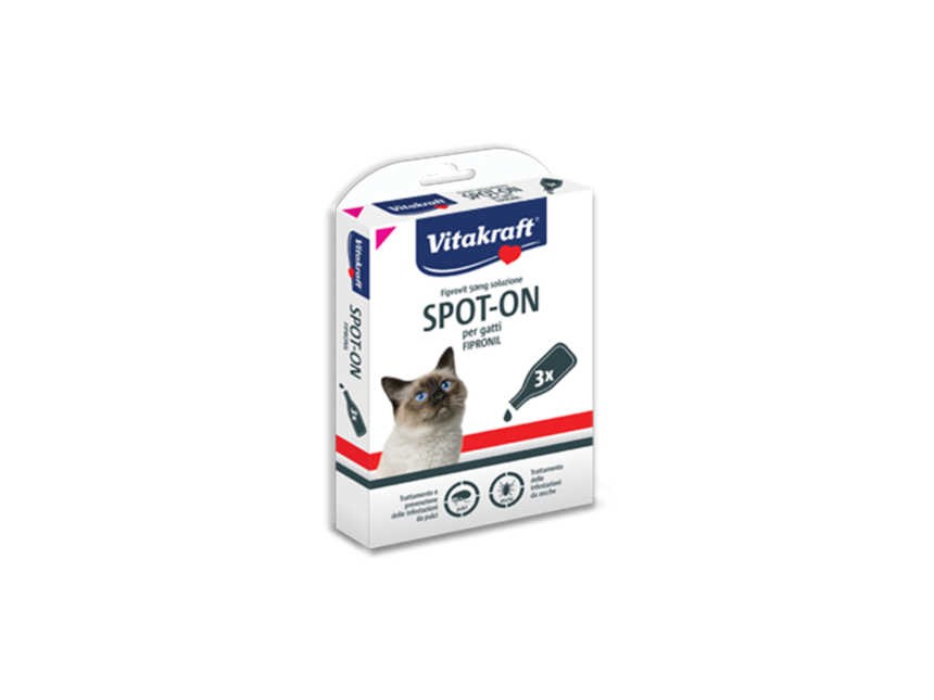 Contiene fipronil, principio attivo specifico per il trattamento di pulci e zecche nei gatti.