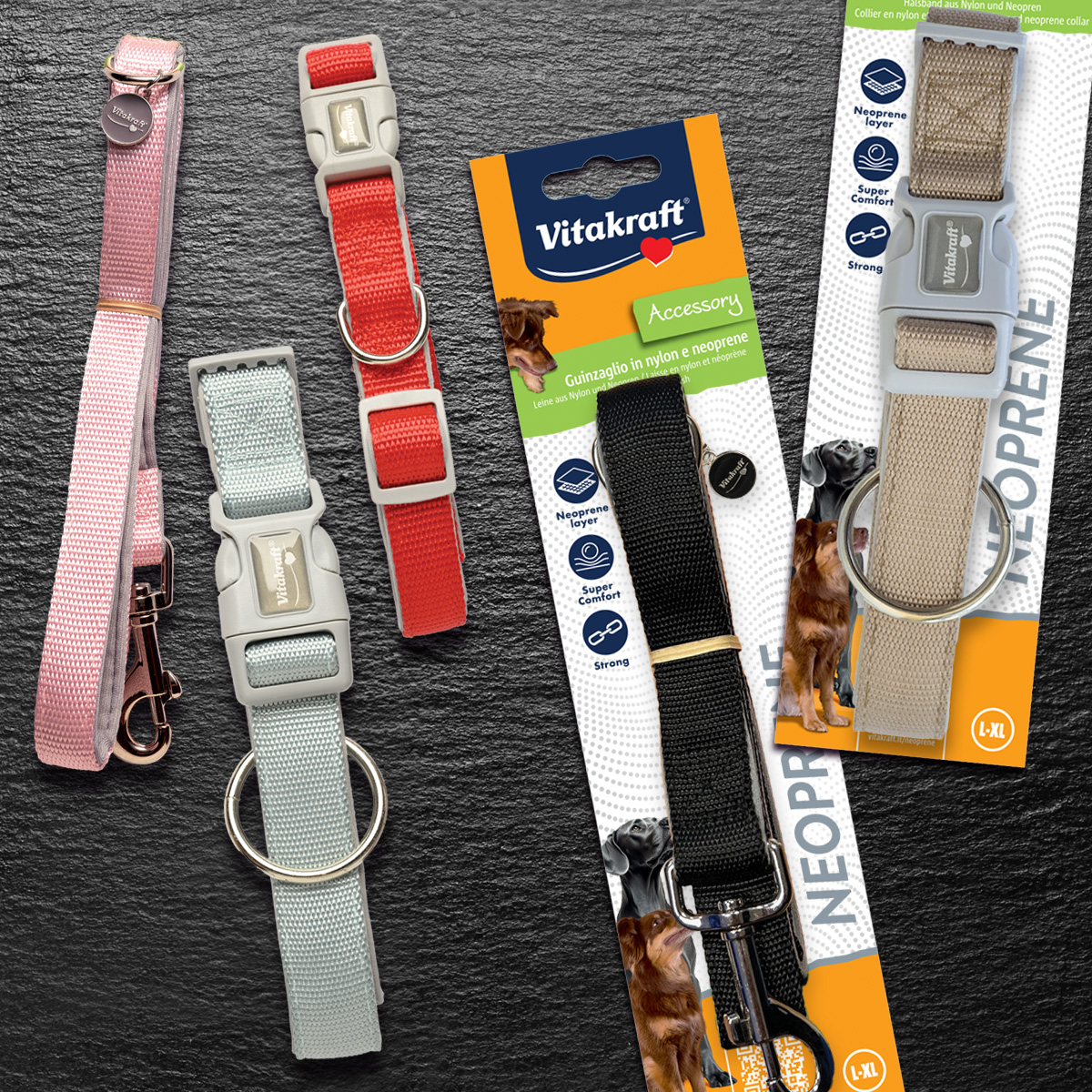 Neoprene e materiali soft touch per proteggere collo e pelle.