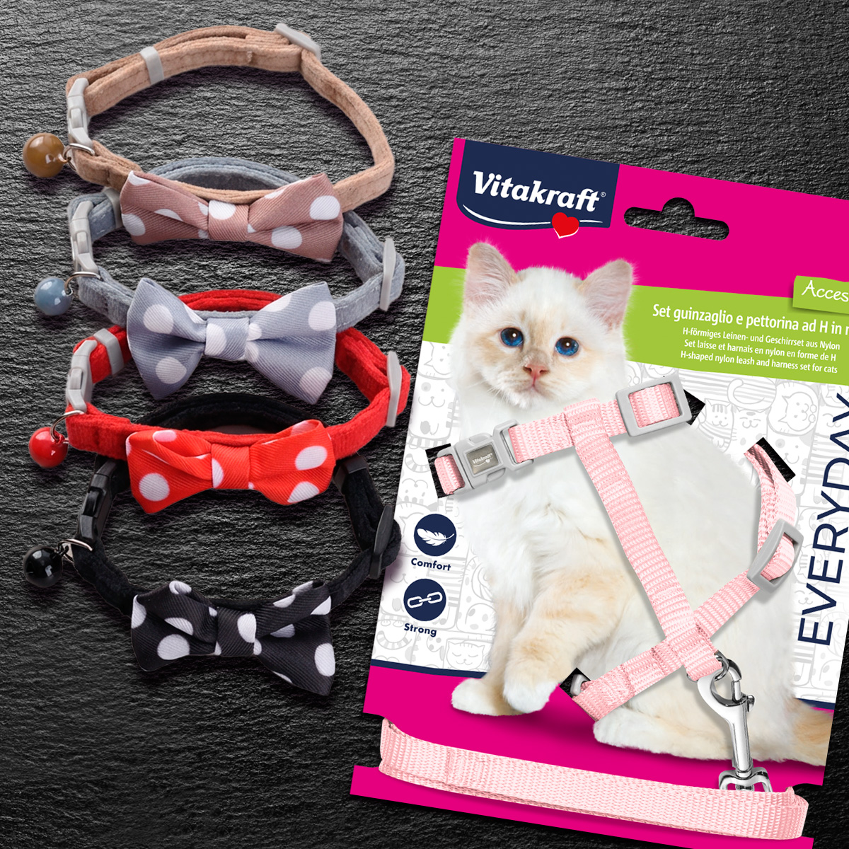 Collarini in velluto con campanello e sganciamento facilitato per maggiore tranquillità.