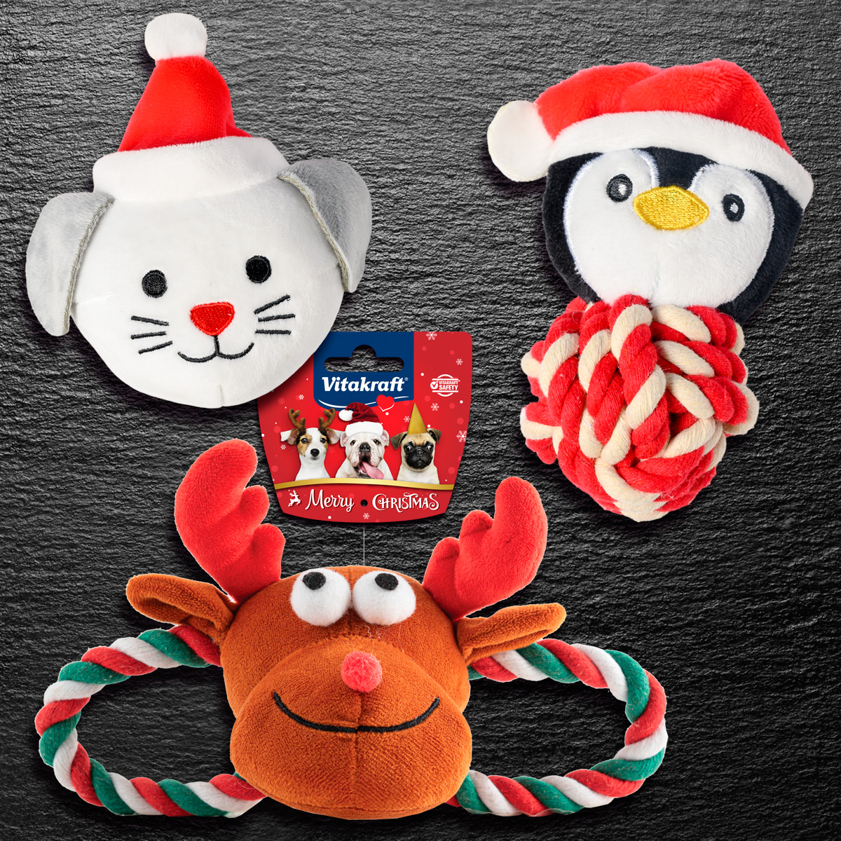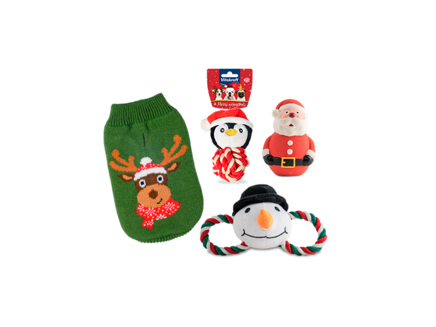 Giochi e accessori natalizi rendono il Natale ancora più speciale, coinvolgendo cani e padroni in momenti di gioia.