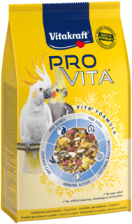 De functionele hoofdvoedingen van Vitakraft® PRO VITA® voor vogels bevatten de VITA® FORMULE, ontwikkeld in samenwerking met dierenartsen. Deze uitgebalanceerde samenstelling ondersteunt een gezond hart, verhoogt de activiteit en bevordert het welzijn van uw vogel.