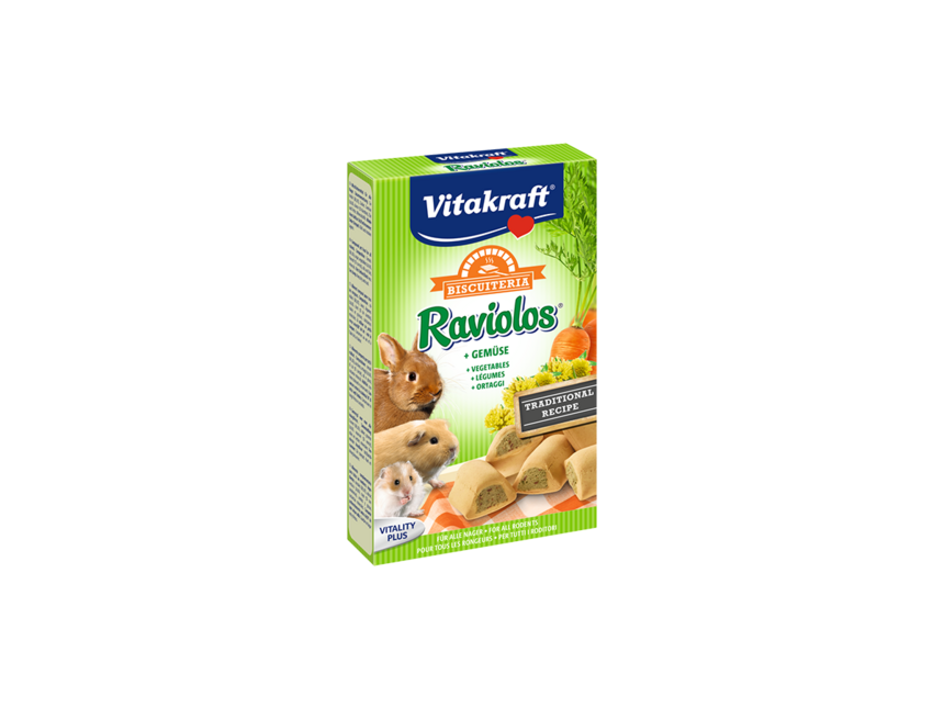 Chutné snacky Vitakraft® BISQUITERIA sú ochutené sezamom, orechmi, banánom, mrkvou a zeleninou, v závislosti od druhu snacku.